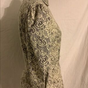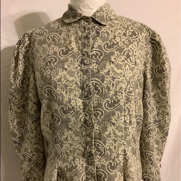 MainFrame Vintage White Floral Design Button Down Blouse Made in USA Gray& Cream