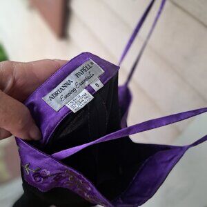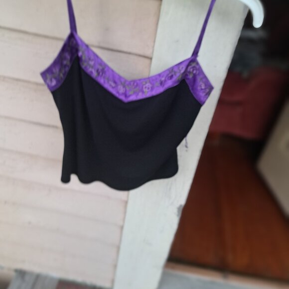 Lovely,camisole type top with skinny straps, cropped . Black with purple embroidery. Dressy
