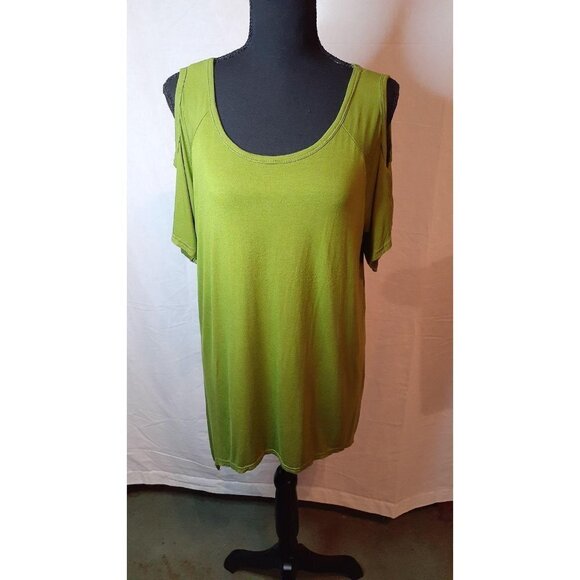 Relipop top green 70%cotton 30%polyester size LX off the shoulder sleeves