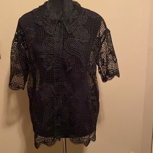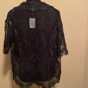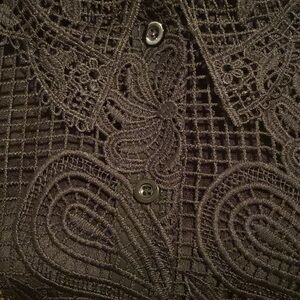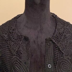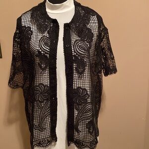 Embroidered Black Top, Size Large,Black, Button Front Closure, Can be worn open or closed, NEW!