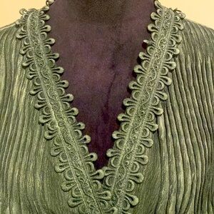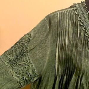 Indigo Thread Top, Size M, Olive Green, Lace Detail, Button Front, This Top Speaks Volumes, NEW!