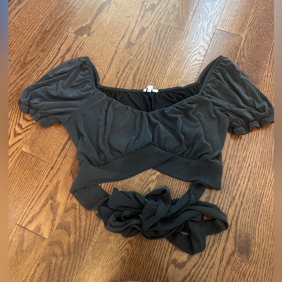 Black Love Tree tie waist crop top