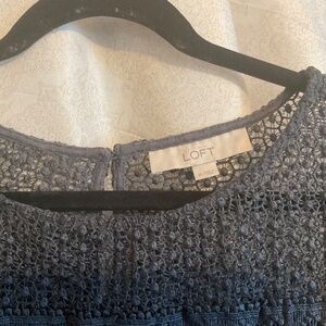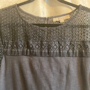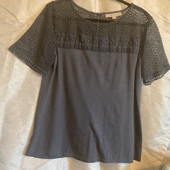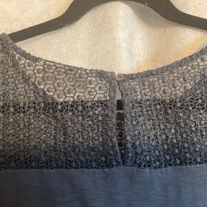 Lace striped knit, pull over with back button n loop, shirt body has relaxed fit, gently used, no flaws. Very good condition