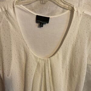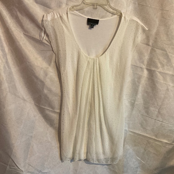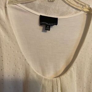 Stylist front overlay tshirt, off white, no flaws, 100% polyester, short cap sleeves, cute paired with baggy pants, jeans, leggings.