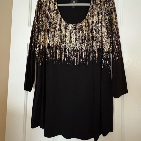 Black long top embellished with gold.