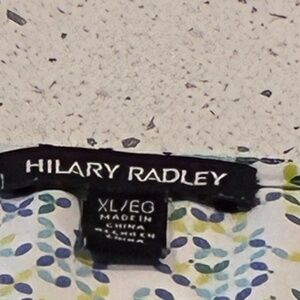 Color white background with a geometric small print with blues greens and yellow 100% polyester