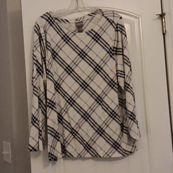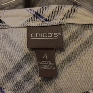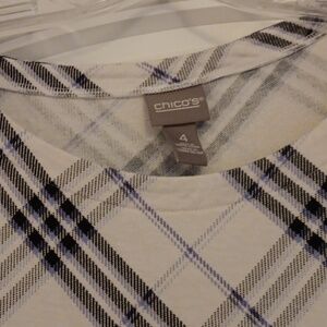 Chico's black, white and purple plaid top