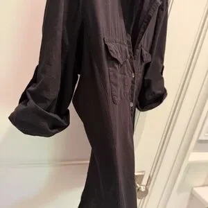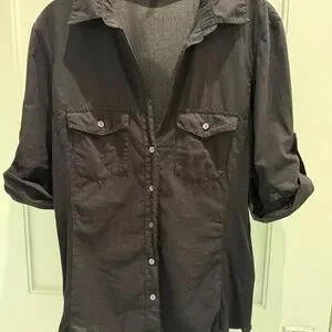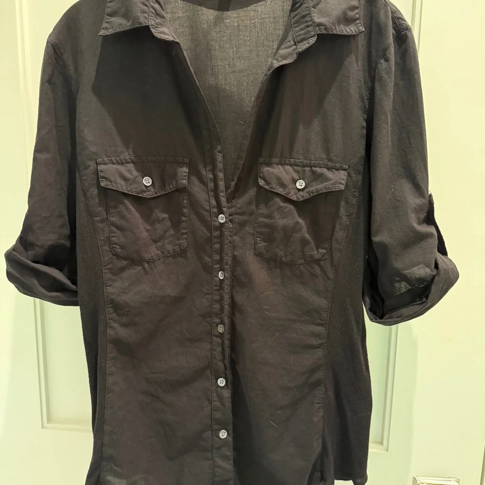 Black button down cotton blouse with knit sides and roll up button sleeve Size 3