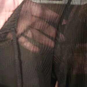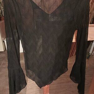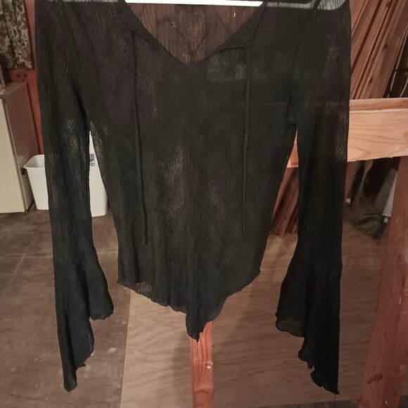 Sheer black top, looks good layered over a black tank. Size s/m. String at neck, v at bottom
