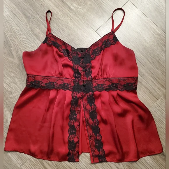 size XL burgundy red with black lace top good condition