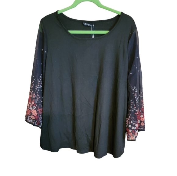 New size 12 long sleeve top. 22in pit to pit, 28 in long, 21 in sleeves. Polyester, rayon, spandex materials.