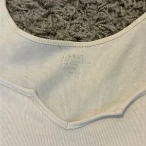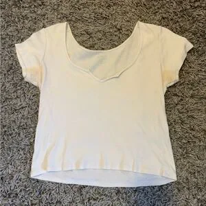 White cropped baby tee w/ scoop neck, one size, stained underarms