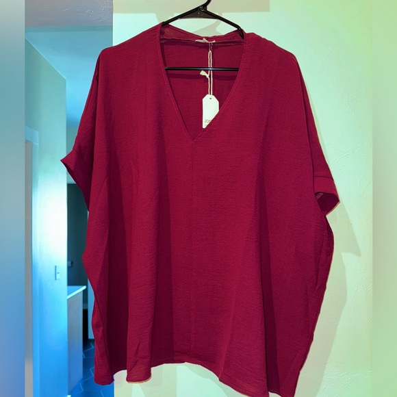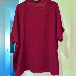 Burgundy/Maroon colored top - super silky and soft material - oversized - I would completely keep this if it fit - NEVER WORN