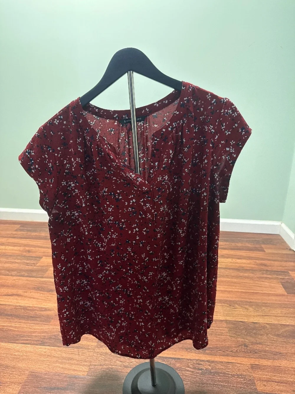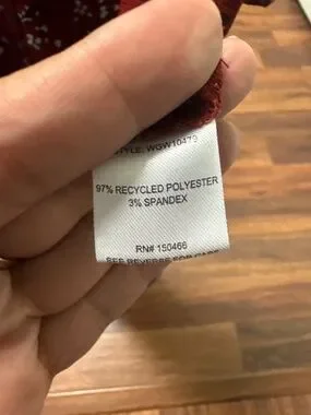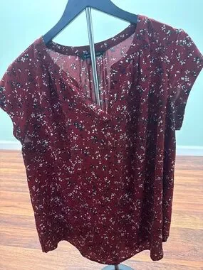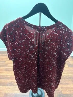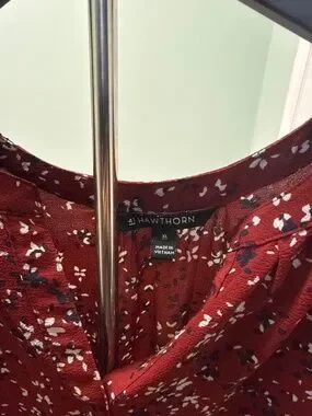 Red v-neck top with floral design