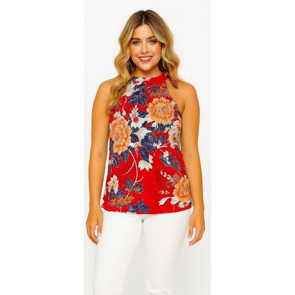 ANA Sleeveless Blouse Hi Tie Neck Top Shirt Floral