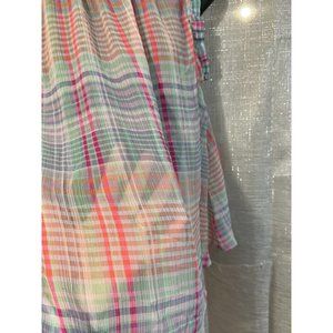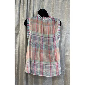 Glen plaid Lavender Plaid striped Sleeveless Ruffle Neck Blouse
