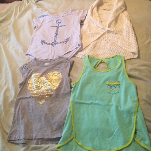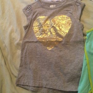 Sailor top- Harper canyon. Size 5. High low top. Crazy 8 White Vest- high low. Size 4T. Crazy 8 gray tshirt- high low top. Gold metallic heart. Size xs (4). Tommy Hilfiger tank top. Size xs (4). High low.