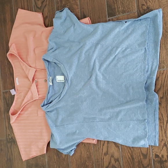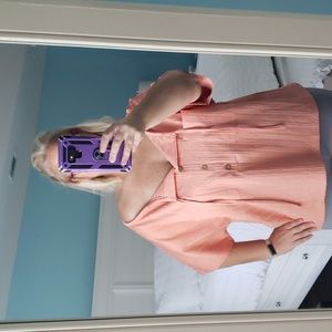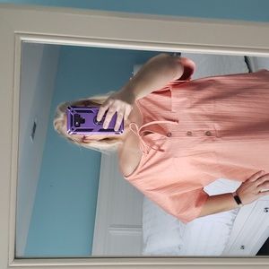 🧡 The other top is a coral/shrimp/orange color. Very pretty. the drawstring at the neck will tighten id you don't want to wear it off the shoulder. It has 2 pockets and the buttons are functional! Brand is from a local Boutique- KS.