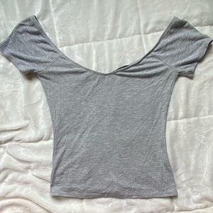 Top Bundle- off the shoulder ribbed lightweight crop tops navy/gray
