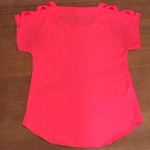 Short Sleeve, Breezy Hot Pink Lattice Cut Out Shoulder Detail Scallop Bottom