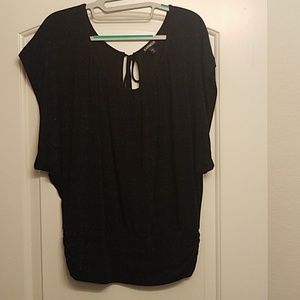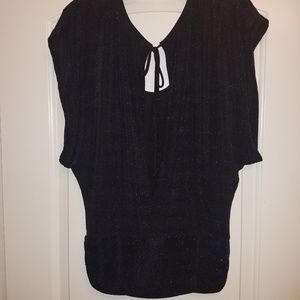 Black & blue sparkle top perfect with jeans, slacks or a skirt. Open peek-a-boo back. Great for a night out on the town