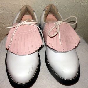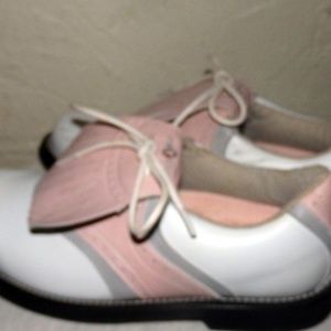 Top Flite White Pink Leather Golf Shoes Size 7 1/2 M Excellent pre worn condition