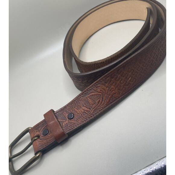 Top Grain Cowhide Brown Hunting scene Western Belt Made in Texas USA 44/110