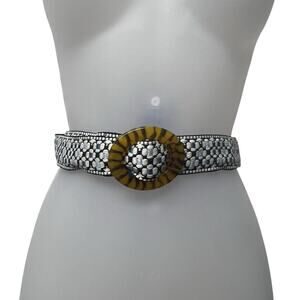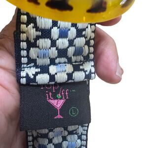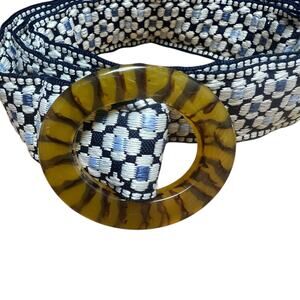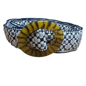 Top It Off Fabric Embroidered Woven Tortoise Shell Lucite Buckle Belt Size Large