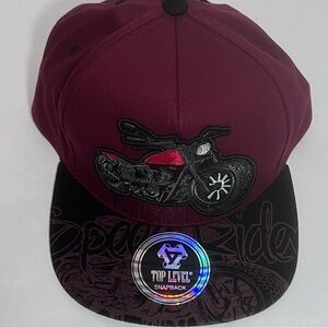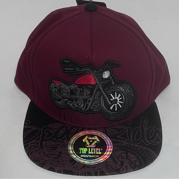 Top Level Motorcycle SnapBack Cap Hat Embroidered Flat Bill Print Speed Rider