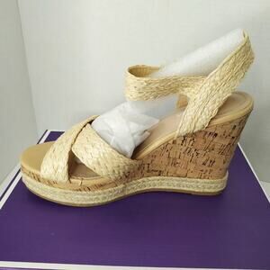 Top Moda Beige Raffia Woven Kalina Wedge Sandals