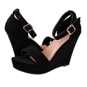 Top Moda Beryl black platform wedge sandals, size 8. New with box.