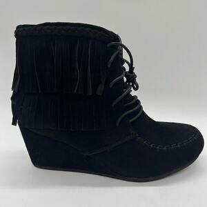 Top Moda Boots Womens 6.5 Black Moc Toe Lace Up Wedge Moccasin Bootie NEW