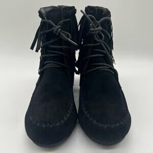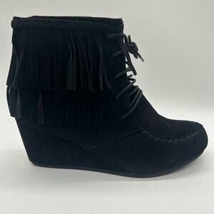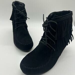 Top Moda Boots Womens 8 Black Moc Toe Lace Up Wedge Moccasin Bootie NEW
