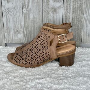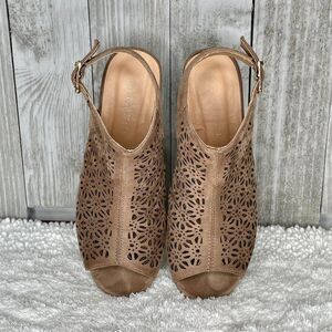 Top Moda Brown Laser Cut Slingback Peep Toe Booties Size 7