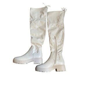 Brand new, stylish Top Moda Chucky White High Boots in size 6.5. These boots feature a round toe for comfortable wear. Perfect to pair with any outfit for a chic look.