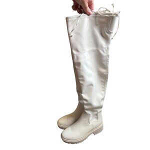 Top Moda Chucky White High Boots Size 6.5 Round Toe NEW Over The Knee