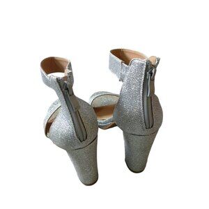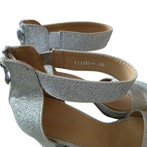 Top Moda Claire-1 Women's 6.5 Silver Glitter Block High Heeled Open Toe Sandals
