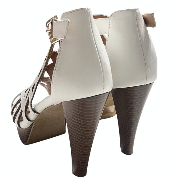 Top Moda Geometric Cutout Elegance Open Toe Ankle Buckle High Heel Sandals