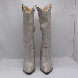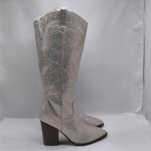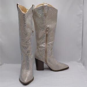 Top Moda Imogen Rhinestone Western Boots Women’s 5.5 Champagne Sparkle Block Heel Festival Boots