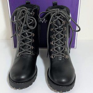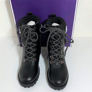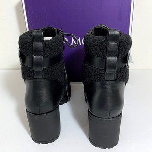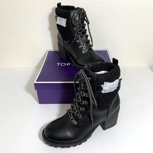 NEW Top Moda Nordstrom Pluto Boots Black Faux Shearling Cuff Lug Sole Buckle Booties Size 6.5 NIB