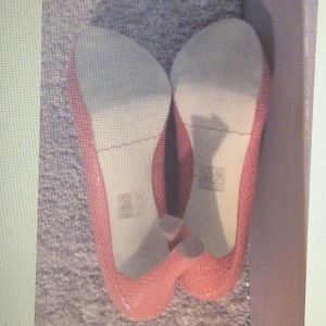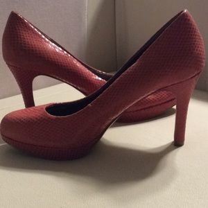 Top Moda leather Platform Pumps Cow Orange Diamond Print Almond Toe, High Heel. Minor imperfection, mark on outside of left shoe.