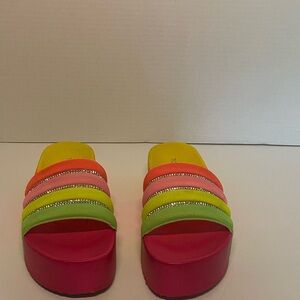 Top Moda Rainbow Ombre Platform Y2K Neon Wide Strap Slip-On Slides Size 6