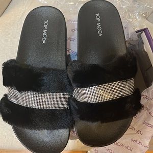Brand-new black rhinestones slippers in the box never been worn.