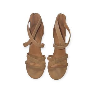 Top Moda Womens Strappy khaki Heel Open Toe Sandals Size 7 Zipper Back