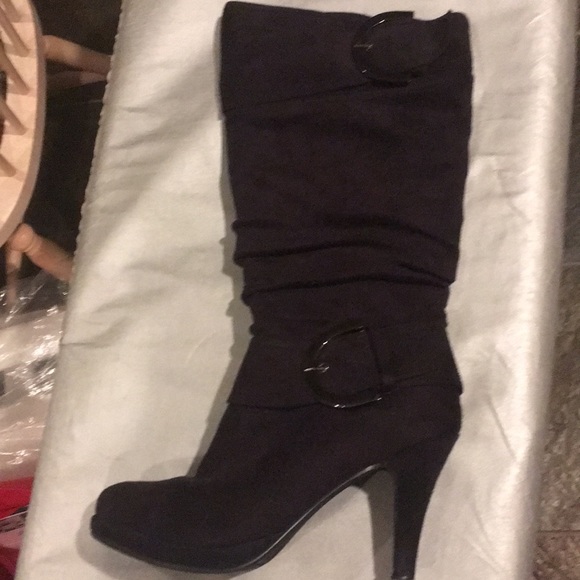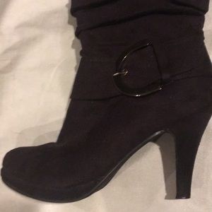 Suede material, 3.5” heel. Need to get new bottom on one heel as shown. In great condition!