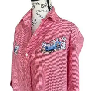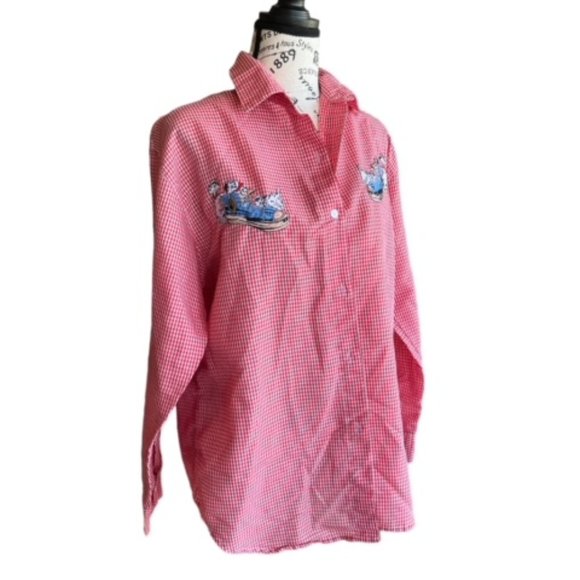 Woman's Red button Down top , Dalmations Size Med # 1054