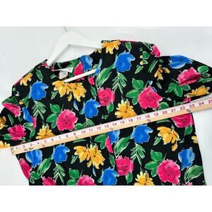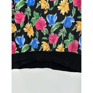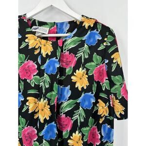 Top Notch Vintage Blouse Womens 20W Black Floral Print Short Sleeves Pleated