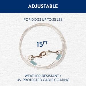 Top Paw 15' Reflective Dog Tie Out Silver Small Adjustable For 25lbs Outdoor NWT
