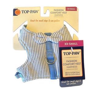 For sale is this Top Paw Baby Blue White Stripe Soft Comfort Vest Bow Tie Dog Harness Size XXS. This harness is new with out tags! Any tags pictured are for description purposes only and may not be on the item you receive.