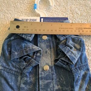 Top Paw tie-dye 100% cotton denim dog jacket. Item closes with Velcro but has snap details.
